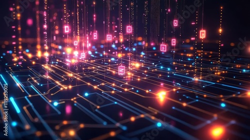 Obraz premium Abstract computer icon with minimalist data connections flowing into it on a...