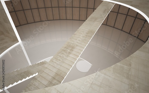 Obraz premium Abstract concrete and wood interior multilevel public space with neon...