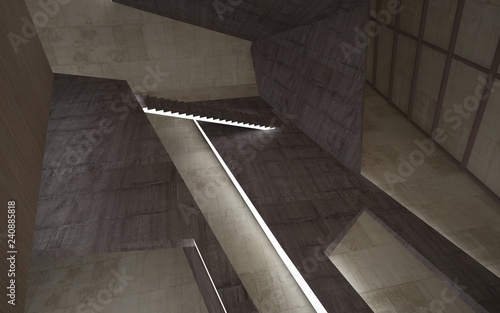 Obraz premium Abstract concrete and wood interior multilevel public space with neon...