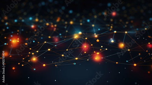 Fototapeta premium Abstract connected dots forming a complex network on a dark backdrop