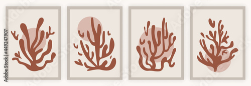 Fototapeta premium Abstract coral posters. Modern minimalistic collection of sea leaves of...