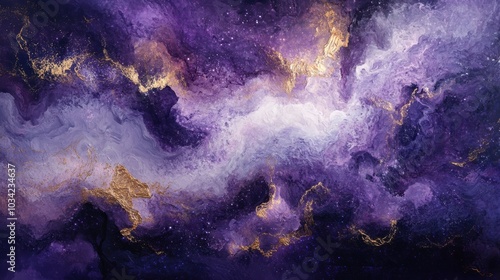 Obraz premium Abstract cosmic art, purple, gold, and stars.
