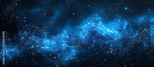 Naklejka premium Abstract cosmic background with glowing blue nebula and network of stars.