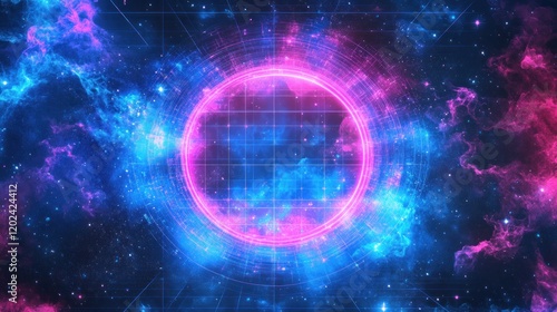Obraz premium Abstract cosmic background with glowing circle and grid overlay.