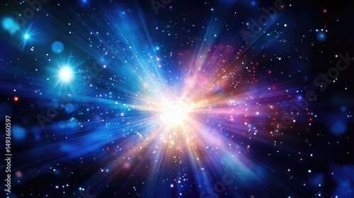 Fototapeta premium Abstract cosmic burst with vibrant colors and shining stars.