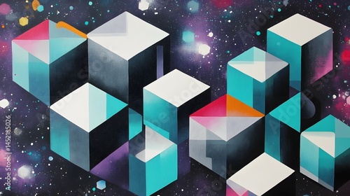 © sahina, Obraz premium Abstract Cosmic Cubes Geometric Artwork Galaxy