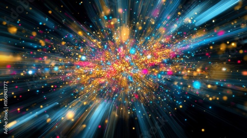 Naklejka premium Abstract Cosmic Dust: Glowing Particles and Light Streaks