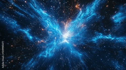 Fototapeta premium Abstract cosmic explosion, with vibrant blue and orange energy radiating...