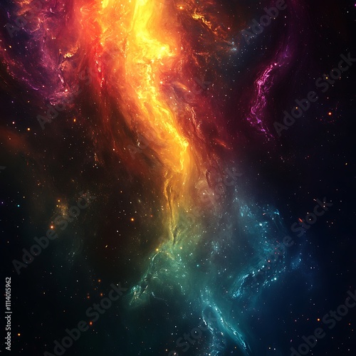 © Rupak, Naklejka premium Abstract cosmic galaxy radiating glowing multi colored stratospheric energy image