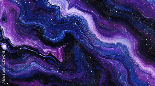 Obraz premium Abstract Cosmic Galaxy with Swirling Purple and Blue Nebulae and Scattered Stars