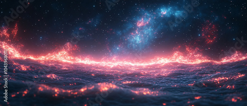 Fototapeta premium Abstract Cosmic Landscape with Glowing Red and Blue Nebula