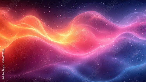 © andryan, Fototapeta premium Abstract Cosmic Landscape with Wavy Lines and Glittering Particles