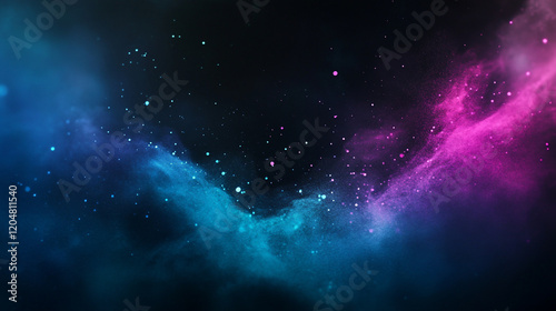 © atex, Obraz premium Abstract cosmic nebula with blue and pink glowing clouds and stars.