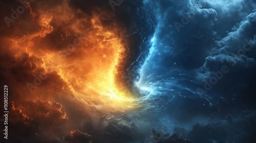 Fototapeta premium Abstract Cosmic Nebula with Fire and Ice Elements