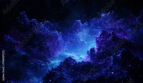Obraz premium Abstract cosmic nebula with glowing blue and purple clouds, stars, and dark...