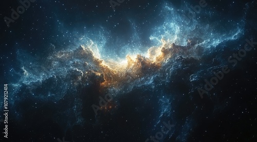 Obraz premium Abstract cosmic nebula with glowing gas and stars.
