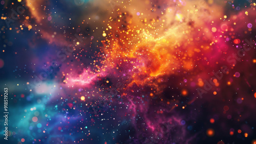 Fototapeta premium Abstract cosmic nebula with swirling colors and twinkling lights