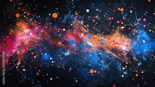 © Almahyra, Fototapeta premium Abstract cosmic nebula with vibrant colors and splatters.