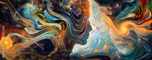 Obraz premium Abstract Cosmic Portrait with Swirling Colors and Galaxies