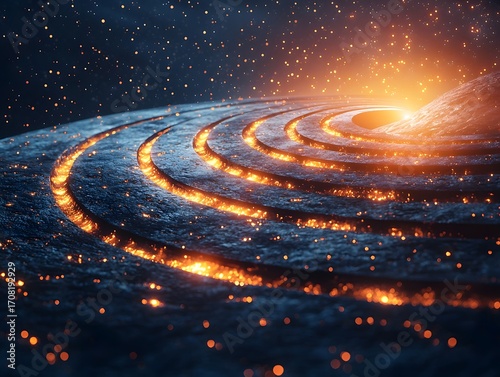 Obraz premium Abstract cosmic rings with glowing orange energy resembling planetary orbits or a galaxy s accretion disk in deep space