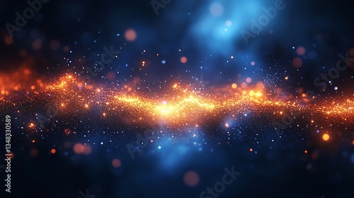 © Ahmed, Naklejka premium Abstract cosmic scene with bright fiery nebula and sparkling stars against a deep blue space background