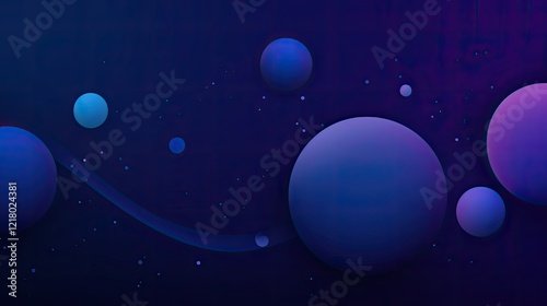 Fototapeta premium Abstract cosmic scene with spheres and gradients in a dark blue-purple background.
