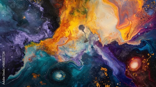 Fototapeta premium Abstract cosmic scene with vibrant colors, swirling patterns, and a range of...