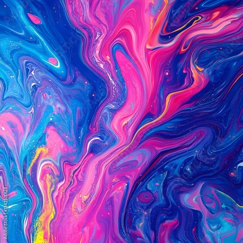 Obraz premium Abstract Cosmic Swirl Paint Background Vibrant Pink Blue Yellow Nebula Texture