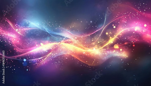 © FauziNh, Fototapeta premium Abstract cosmic waves with vibrant colors and glowing particles