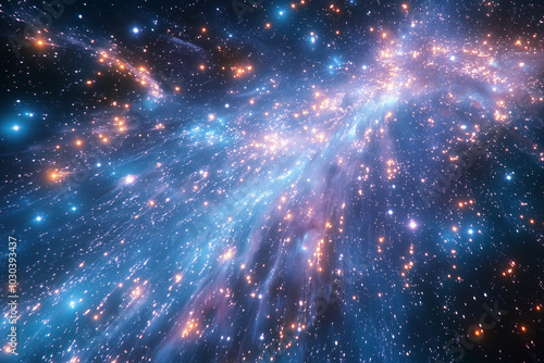 Fototapeta premium Abstract cosmos space background with a multiple space elements, forming a cascade of reaction of space dust in the galaxy