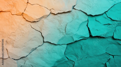 © Jira, Obraz premium Abstract Cracked Stone Texture in Teal and Orange Hues, background illustration