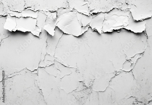 © Laily, Obraz premium Abstract Cracked Wall Texture with Torn Paper Overlay