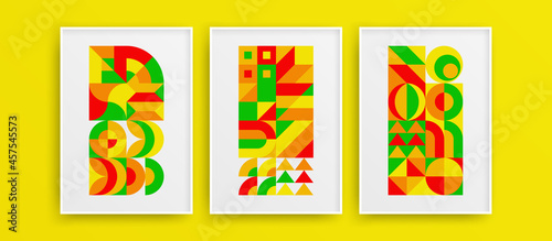 © pro, Fototapeta premium Abstract creative flat shapes vector design illustration set. Unique colorful wall art concept collection.