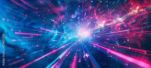 © Anatoll Paveel, Naklejka premium Abstract creative space background. Hyperjump to another galaxy. Speed ​​of light, neon glowing rays in motion.