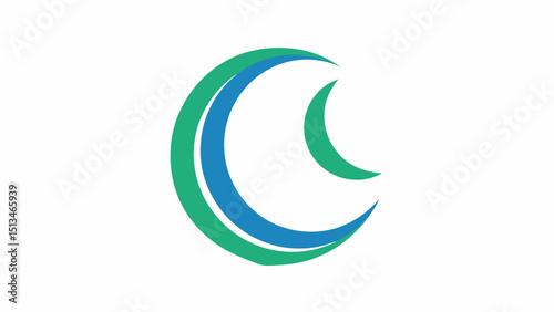 Obraz premium Abstract crescent shape logo with green and blue vector, silhouette,...