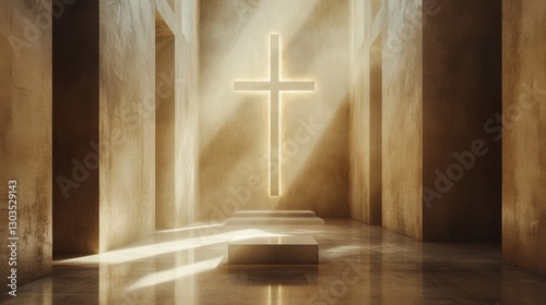 © Johannes, Naklejka premium Abstract cross in church interior.
