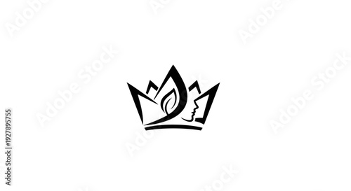 Fototapeta premium Abstract Crown Logo with Leaf and Female Face Profile