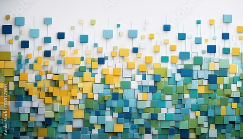 Fototapeta premium Abstract cube art in teal, yellow, and green.