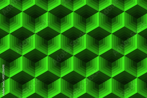 Fototapeta premium Abstract cube pattern on green background. Isometric, 3d space looks like optical illusion