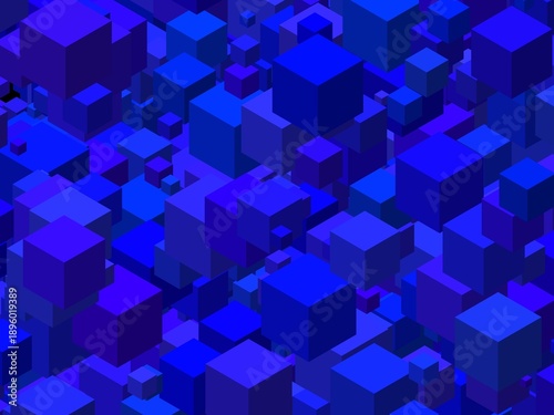 © Claudio Divizia, Obraz premium abstract cubes art blue on black