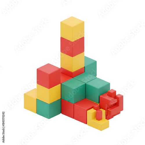 Obraz premium Abstract Cubic Sculpture Colorful Geometric Shapes on Transparent Background