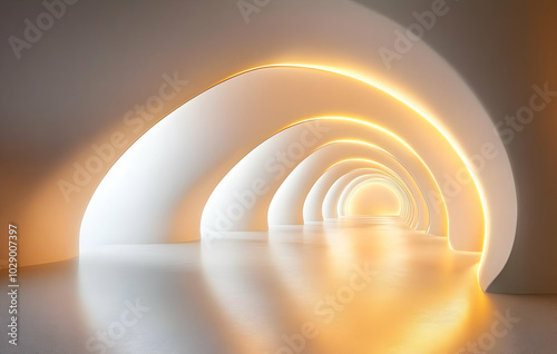 © RAT-GSJ, Obraz premium Abstract Curved Background with Soft Golden Light