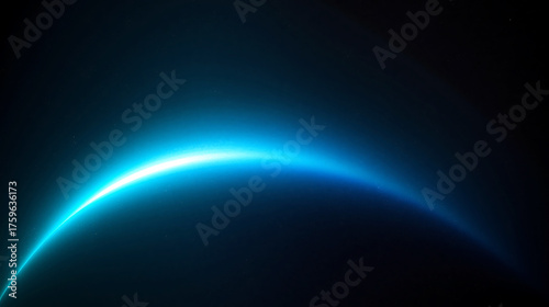 Fototapeta premium Abstract Cyan Light Curve Against Dark Background Evoking Technology and Space Exploration