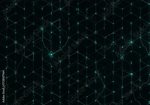 © Sayingot, Fototapeta premium Abstract cyan mesh pattern, glowing light node, digital technology net