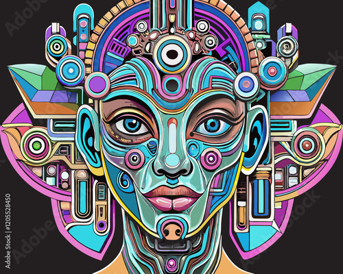 © Dragut Design AI, Naklejka premium Abstract Cyborg Woman Portrait