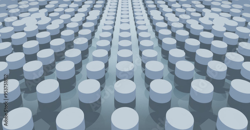 Fototapeta premium Abstract cylinder pattern. Gray cylindrical shapes arranged in a pattern. Represents organized structure or data flow.