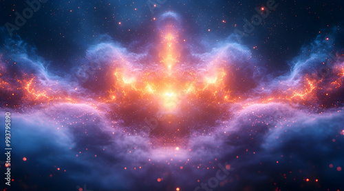 © Maya Crafta, Naklejka premium Abstract 3D Background: Cosmic Nebula with Glowing Particles