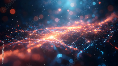 © embun, Fototapeta premium Abstract 3D Background - Red and Blue Glowing Particles