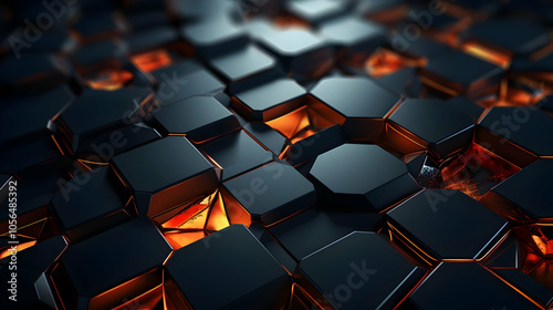 Obraz premium Abstract 3D Background with Black and Orange Polygons