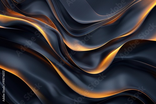 Obraz premium Abstract 3D Background with Wavy Black and Golden Textures.